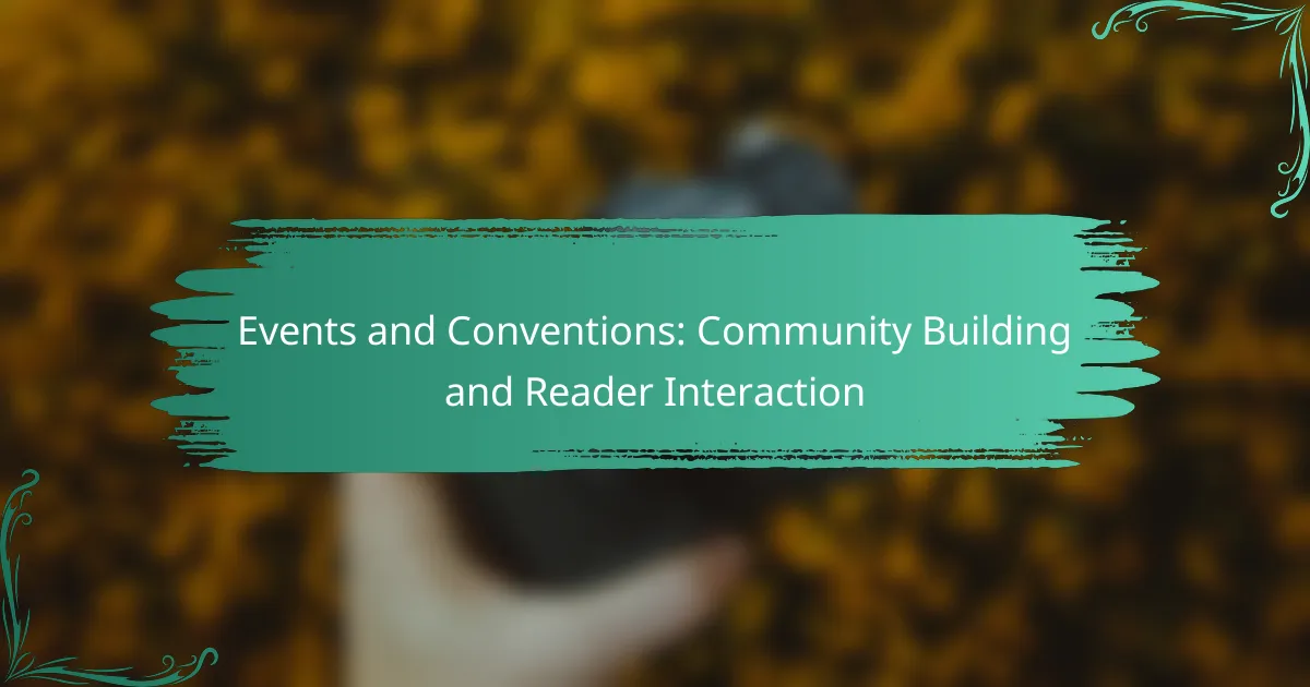 Events and conventions are essential for community building, as they unite individuals with common interests and foster connections that create a sense of belonging. By incorporating interactive sessions and feedback mechanisms, these gatherings enhance reader interaction, allowing for meaningful communication and collaboration. Various formats, such as conferences and workshops, cater to diverse audiences, promoting knowledge sharing and relationship building among participants.
